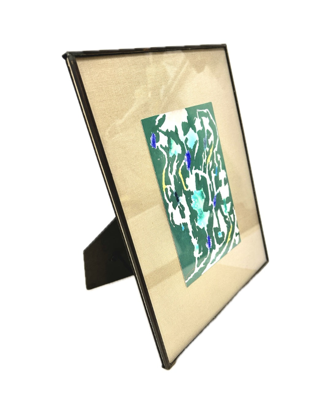 リネンのライニングを施したベースにブラックのメタリックエッジをあしらったフォトフレームで額装済み。