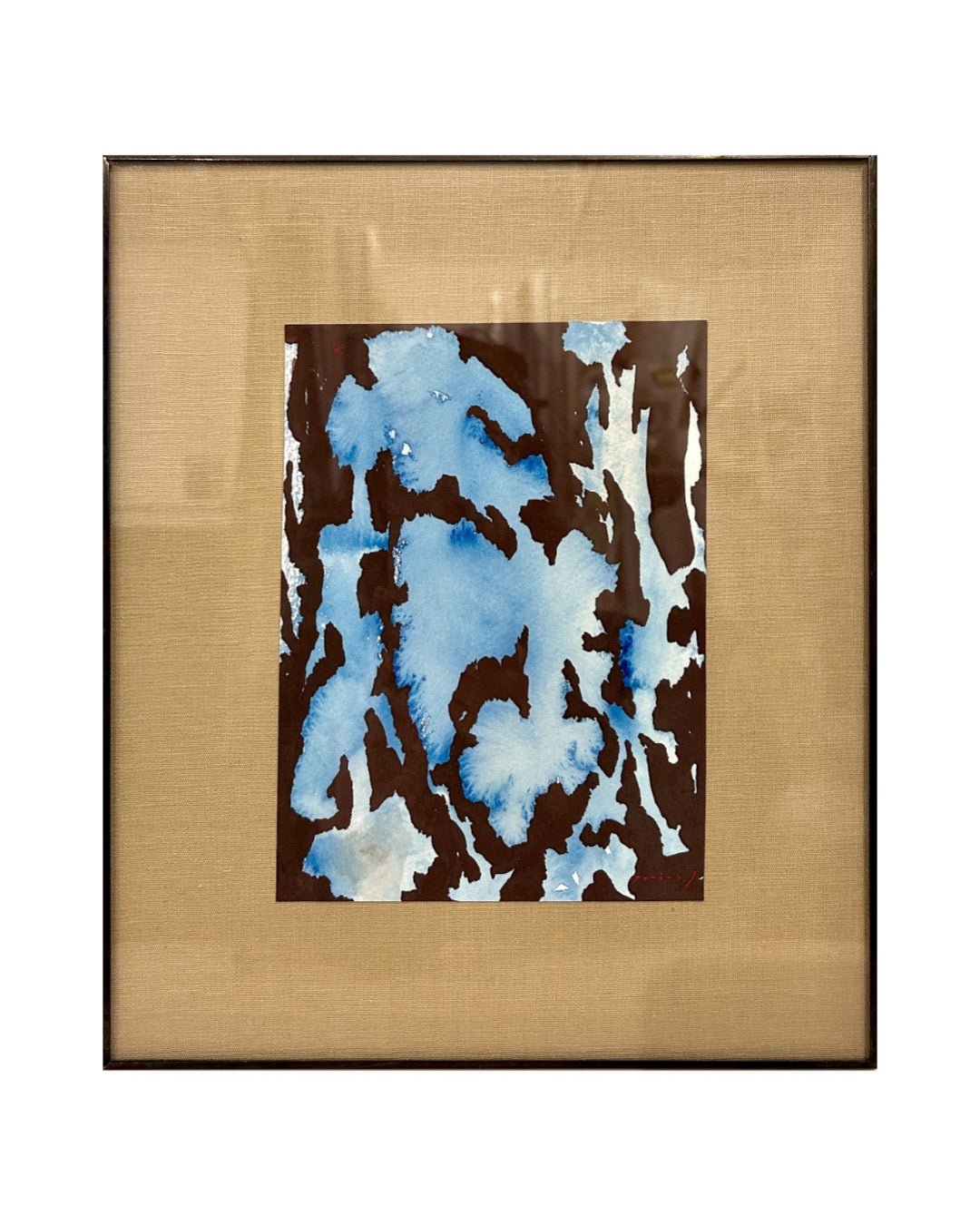 リネンのライニングを施したベースにブラックのメタリックエッジをあしらったフォトフレームで額装済み。背面のフックで壁掛けもできます。